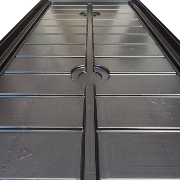 : for the new water tray we use POLYPROPYLENE (PP), which is a plastic material very resistant to atmospheric agents, chemicals, solvents and mechanical stresses and it does not warp under load, retaining its characteristics over time. The reinforcements in the bottom part of the tray help properly supporting it on the shelves and the stacking of the trays. The raised circular edge also makes the tray remarkably tough.