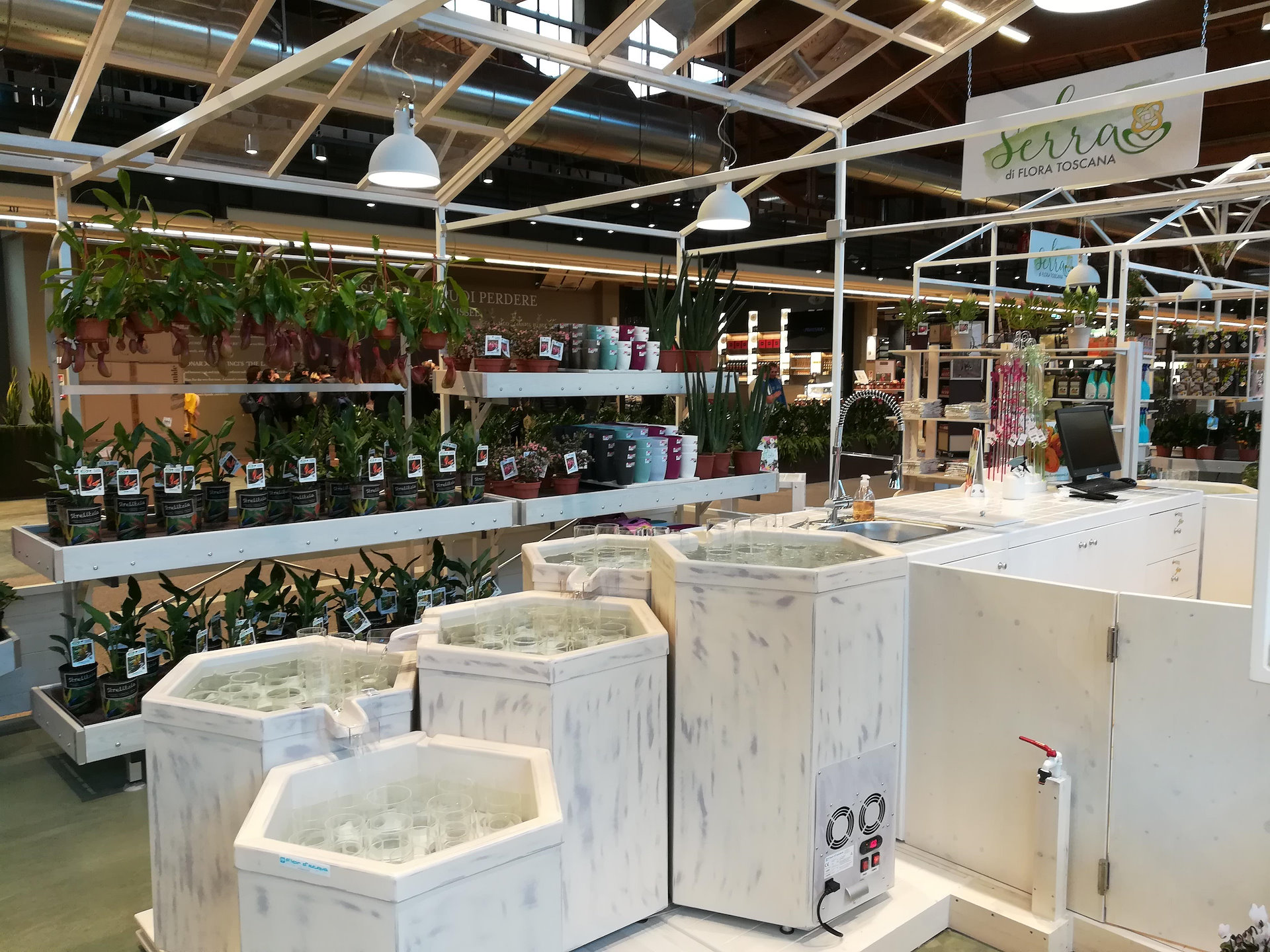 Es ist ein Ausstellungssystem mit Kuehlung für Schnittblumen, dass Dir erlaubt das Wasser nur einmal im Monat zu wechseln.