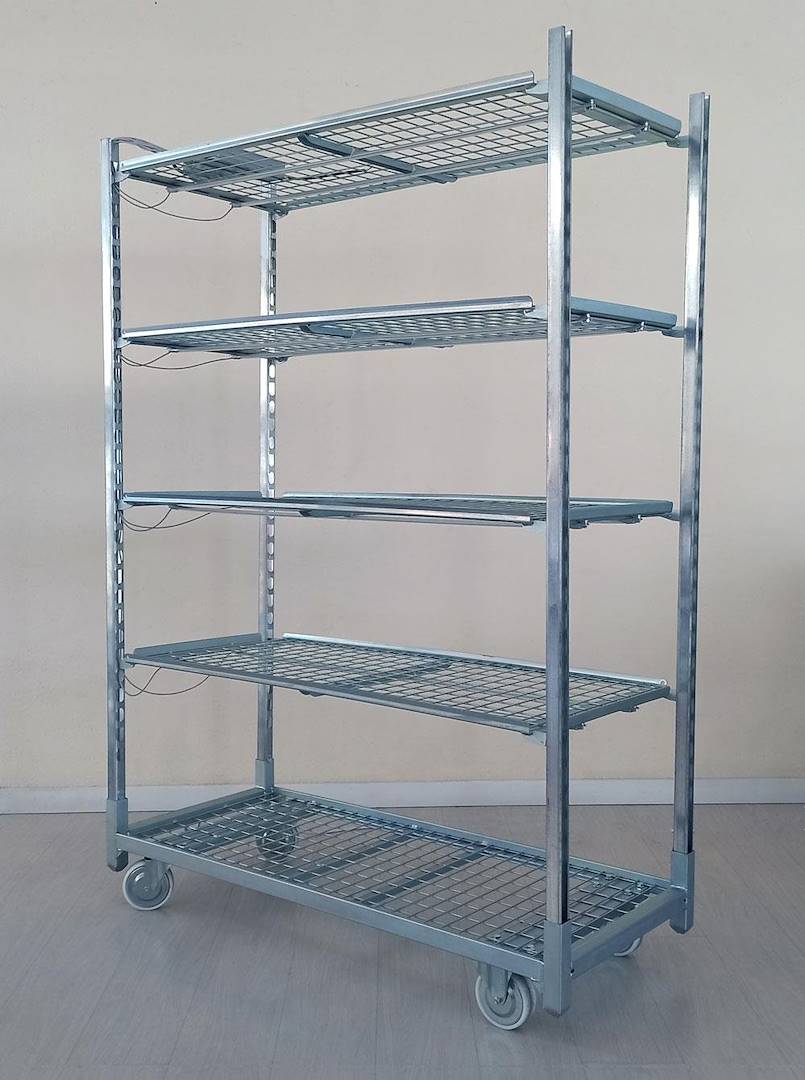 • Trolleys optimiert für Blumenzucht und Pilzzucht in Umgebungen mit hoher Luftfeuchtigkeit