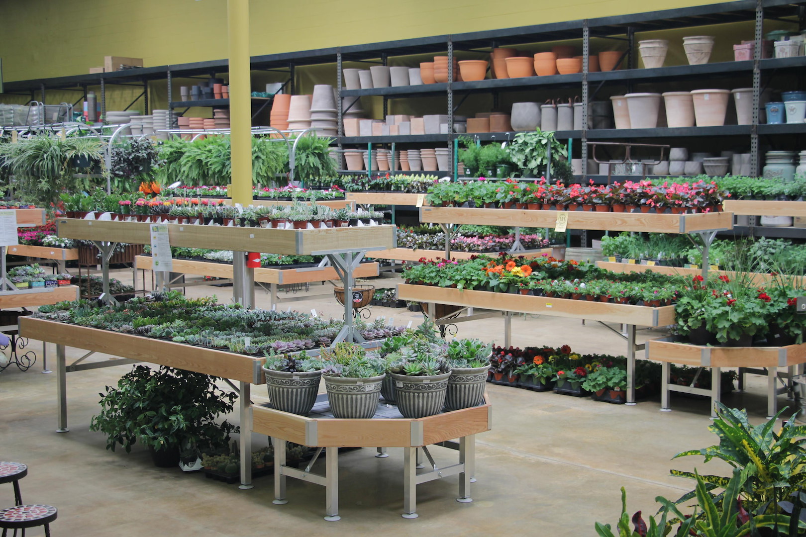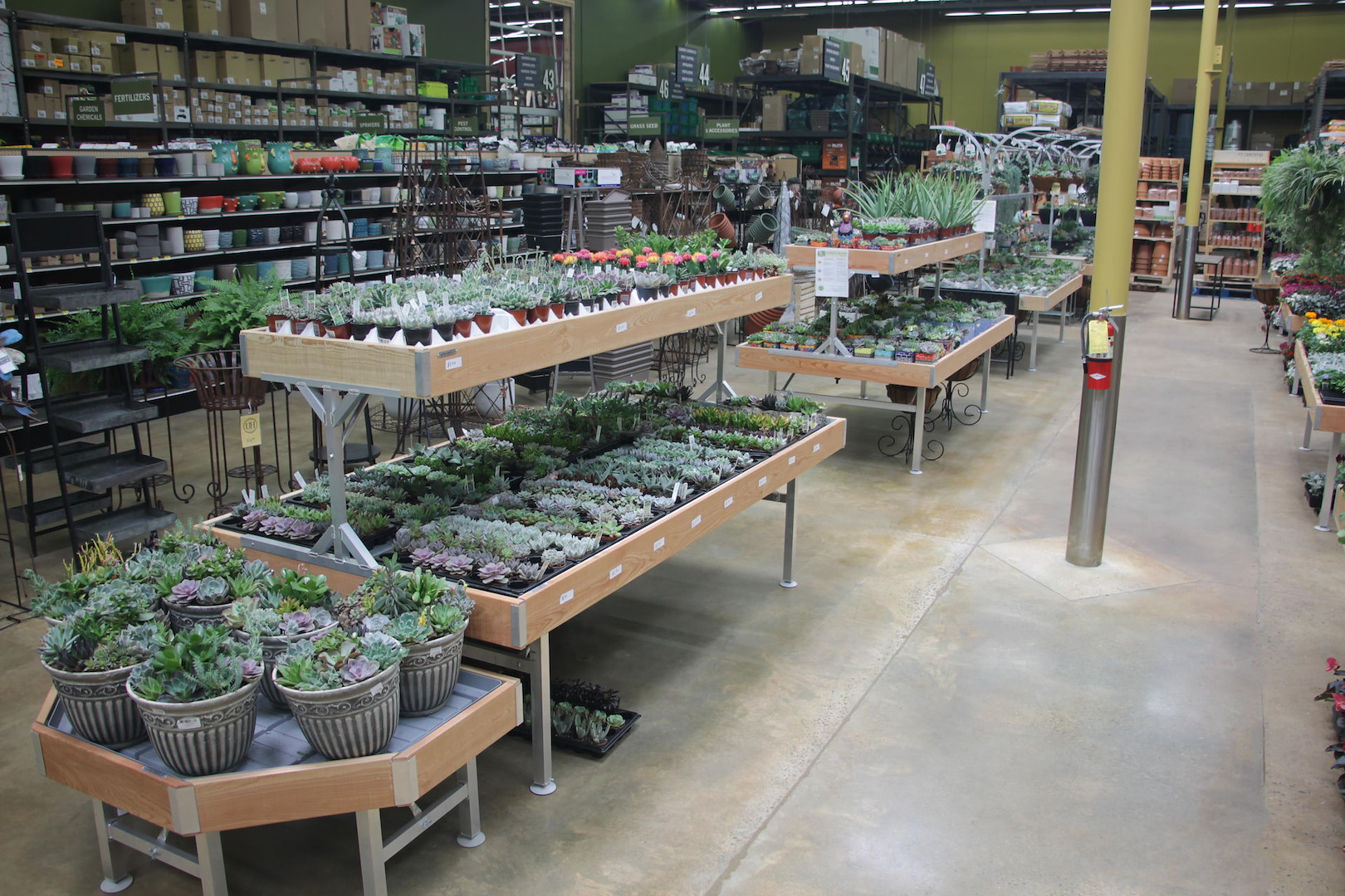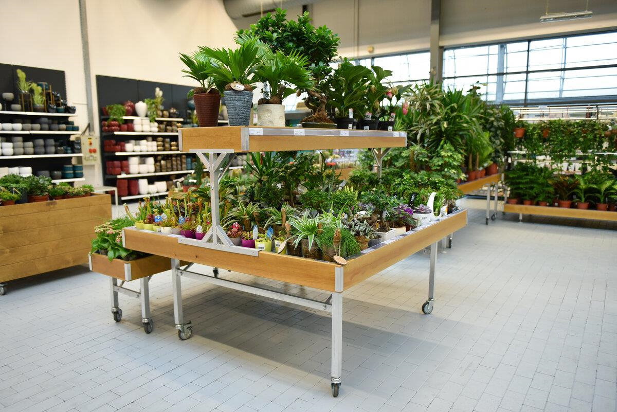 Die erhöhten Palettenprofile bestehen aus gebleichtem Holz und können nach Kundenwunsch angepasst werden. Dies macht sie zu einer der dynamischsten Einrichtungslösungen für Gartencenter auf dem Markt.