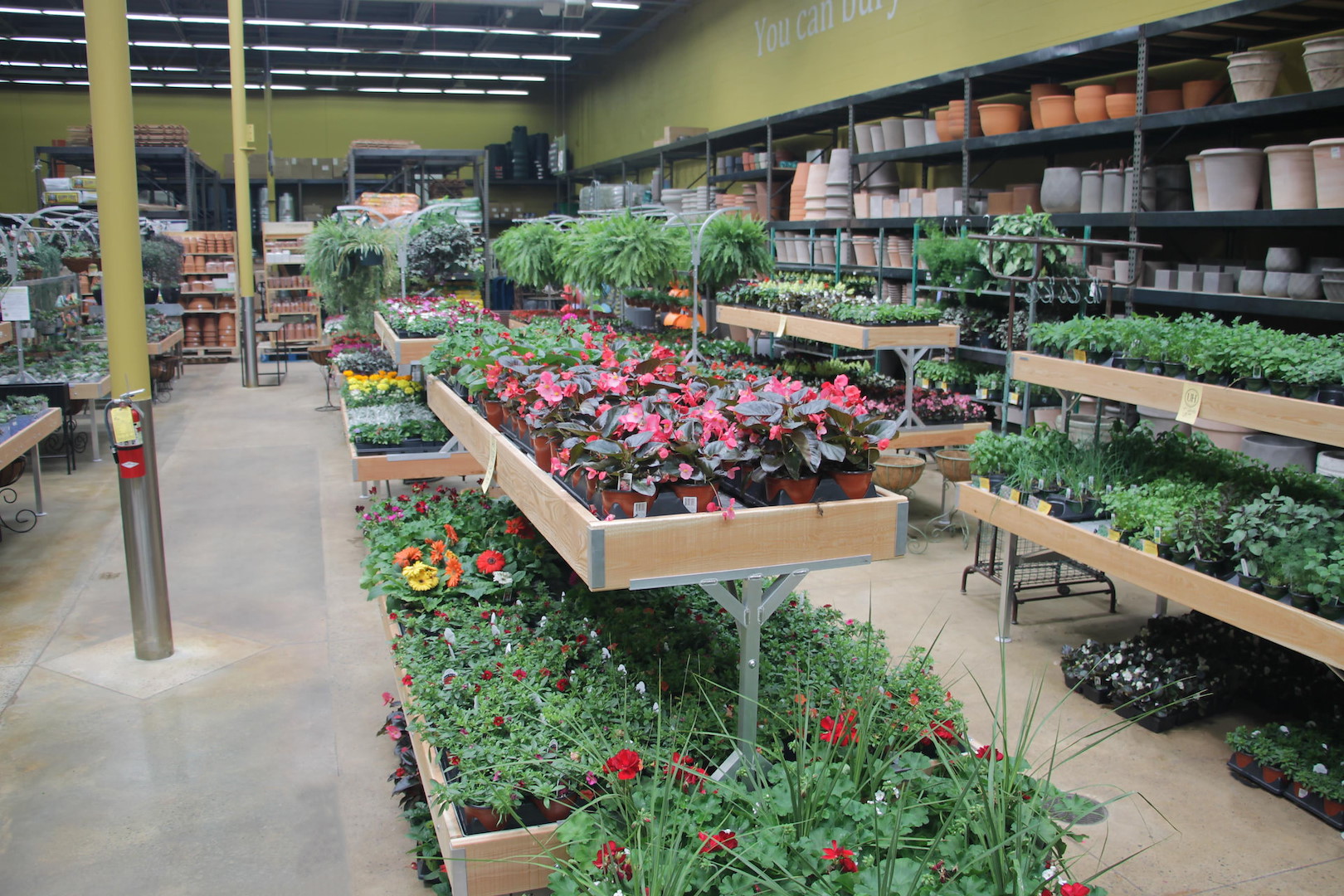 Die erhöhten Palettenprofile bestehen aus gebleichtem Holz und können nach Kundenwunsch angepasst werden. Dies macht sie zu einer der dynamischsten Einrichtungslösungen für Gartencenter auf dem Markt.