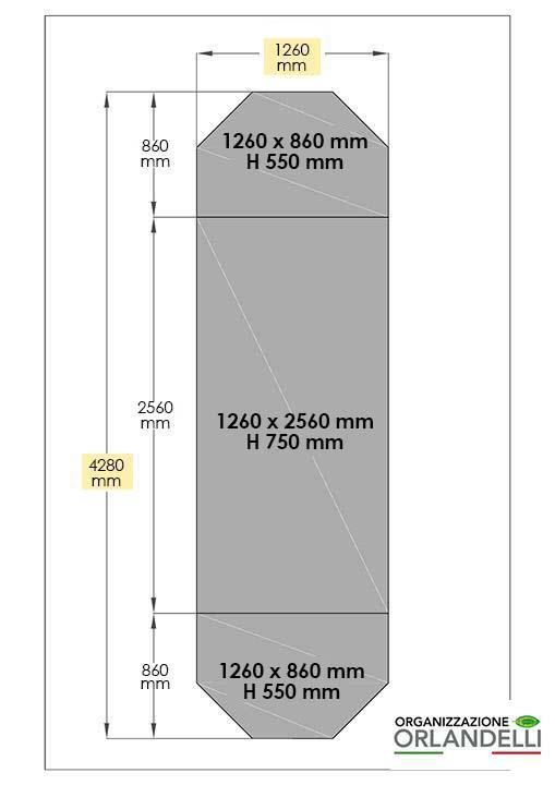 n. 1 zusammengebautes Alu-Verkaufstisch Fußhöhe 750 mm mit Befeuchtungsvlies