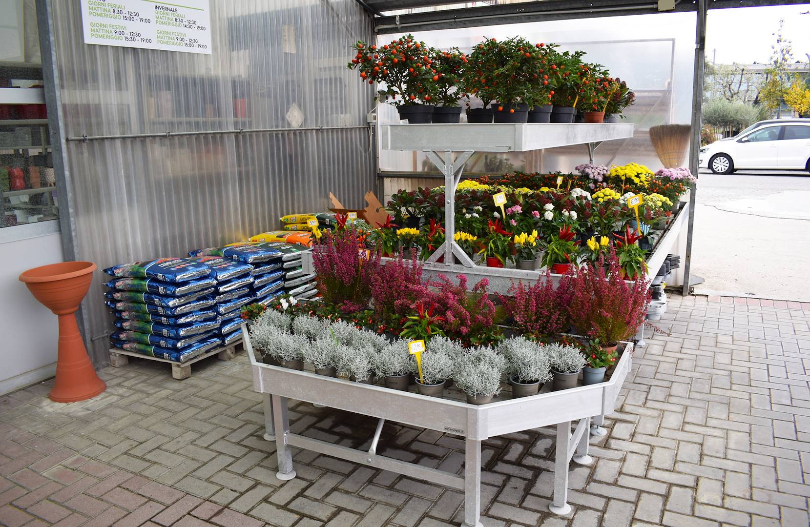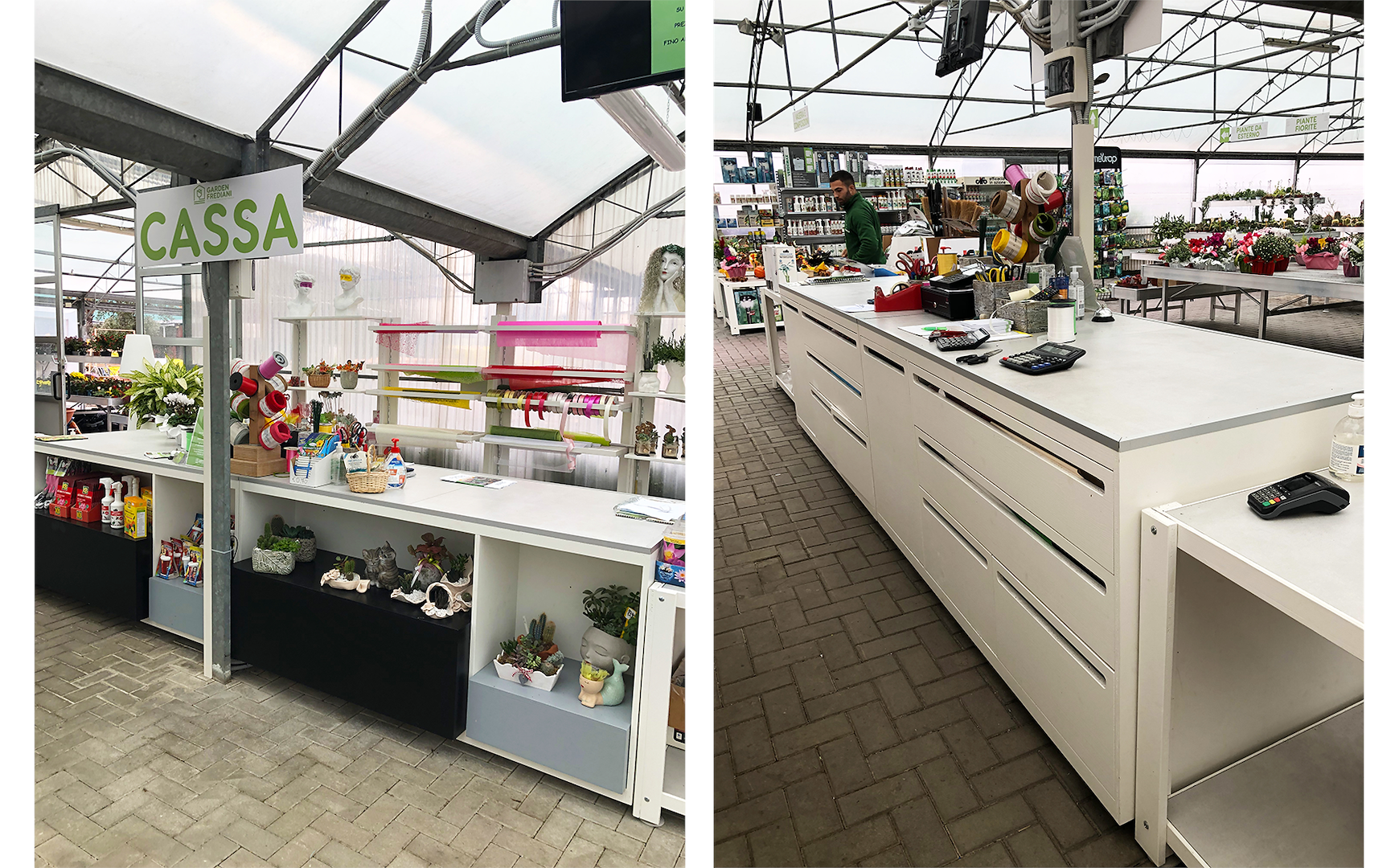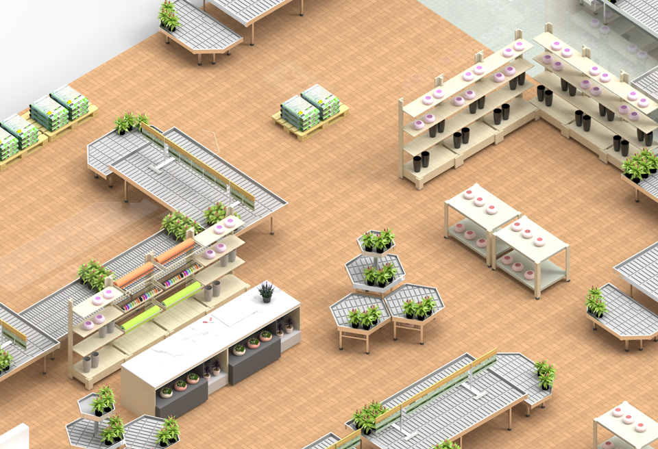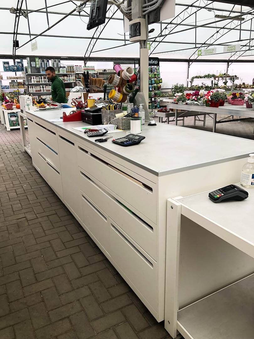 Bei der Gestaltung der Customer Journeys haben wir uns neben der Definition von Kaufpfaden, die die Erkundung des Point of Sale erleichtern können, auf die funktionale Ebene konzentriert, indem wir Wege entworfen haben, die Kunden bei der Nutzung von Einkaufswagen durchlaufen können, was im Vorfeld nicht vorgesehen war. Ladenlayout für die Renovierung. Der Einsatz spezieller Einkaufswagen für Pflanzen, Blumen und verwandte Artikel hat immer wieder gezeigt, wie sie den Kunden den Einkauf erleichtern können, indem sie die Anzahl der gekauften Artikel erhöhen und das Einkaufserlebnis dank einfacher Handhabung verbessern. Ein kurzes Bild, das dieses Konzept sofort verständlich machen kann, ist, an den Kunden zu denken, der gezwungen ist, hin und her zu gehen, um Pflanzen und Säcke mit Erde zu sammeln, mit dem Risiko, dass er vom Kauf absieht, und ihn mit einem Kunden zu vergleichen, der zu Fuß geht Mit einem Wagen, der speziell für die Aufnahme der größten Anzahl an Pflanzen, Blumen oder ergänzenden Produkten in der Branche entwickelt wurde, können Sie sich überall bewegen. Bei der Renovierung der Räumlichkeiten haben wir schließlich mit der Pflasterung einiger Bereiche begonnen, um dem neuen Grundriss ein modernes und aufgeräumtes Erscheinungsbild zu verleihen und so dem Kunden dank der gleichmäßigen Oberfläche auch die Erkundung zu erleichtern.