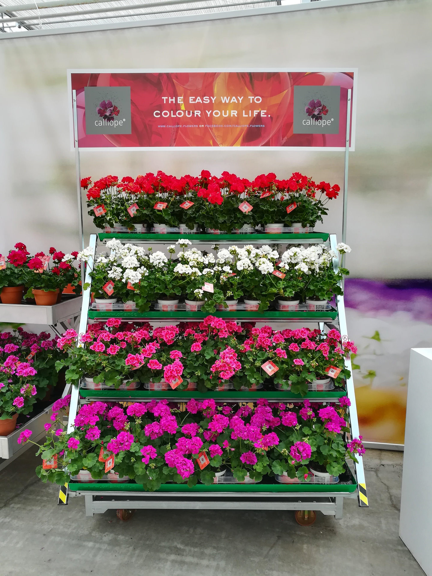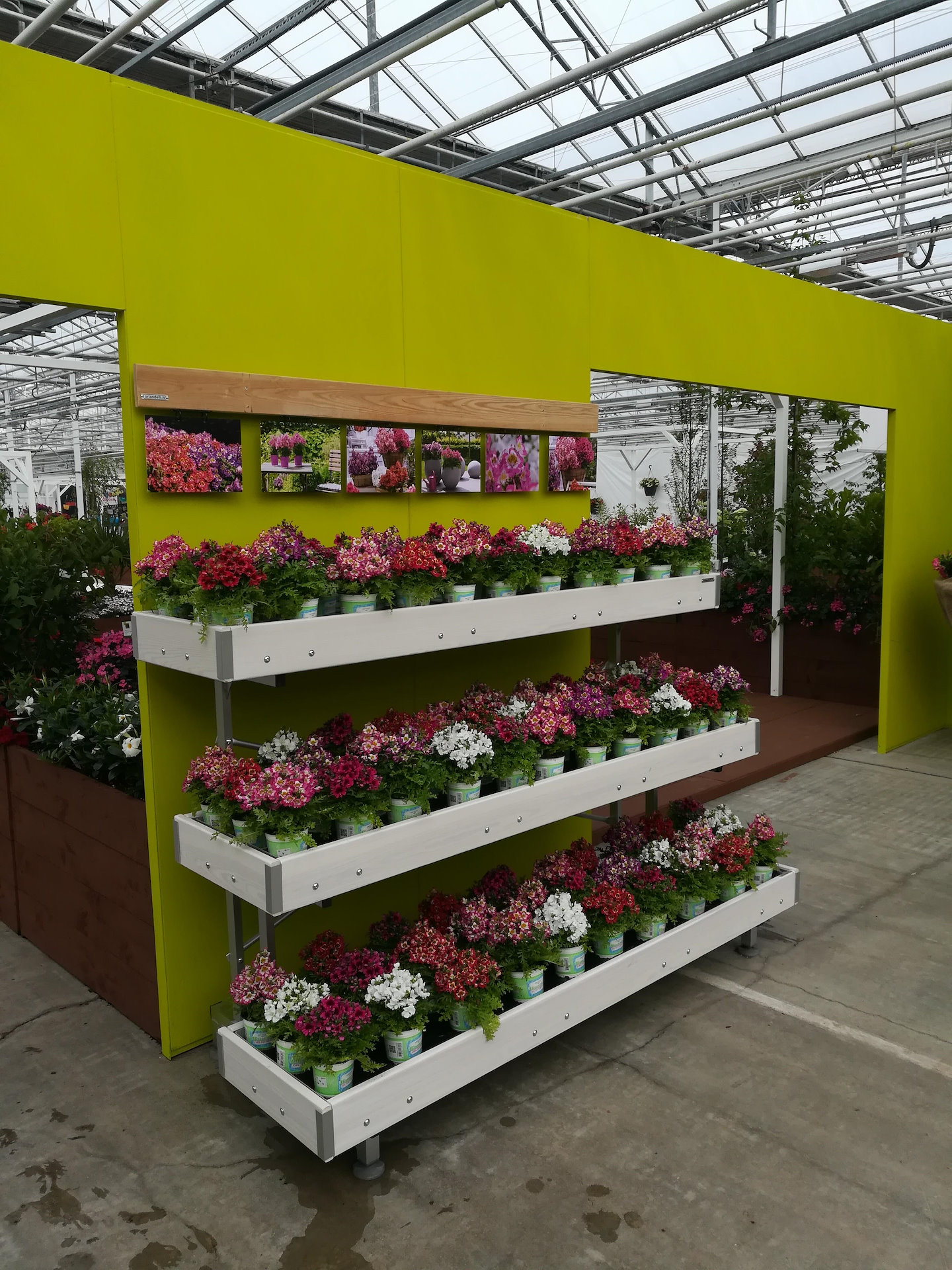 Auch Organizzazione Orlandelli war auf dem Flower Trials da, dank einer Vereinbarung mit Syngenta, ein weltweit führendes Unternehmen, das sich mit der Hybridisierung beschäftigt, haben wir das Konzept „Your Garden Center“ entwickeltet: eine Ausstellungsidee, wie man die Verkaufsfläche von Pflanzen organisieren kann, in einem Gartencenter oder in einem landwirtschaftlichen Unternehmen oder in einem Einkaufszentrum oder in einem Baumarkt.