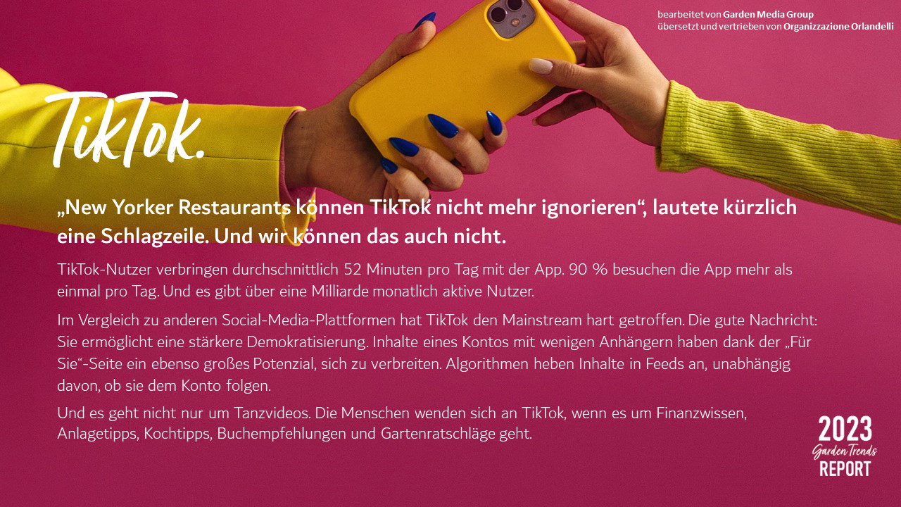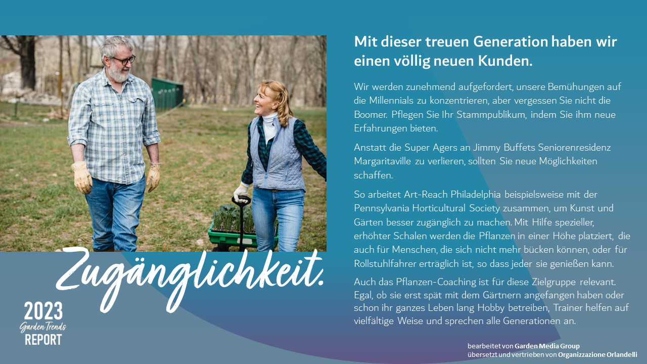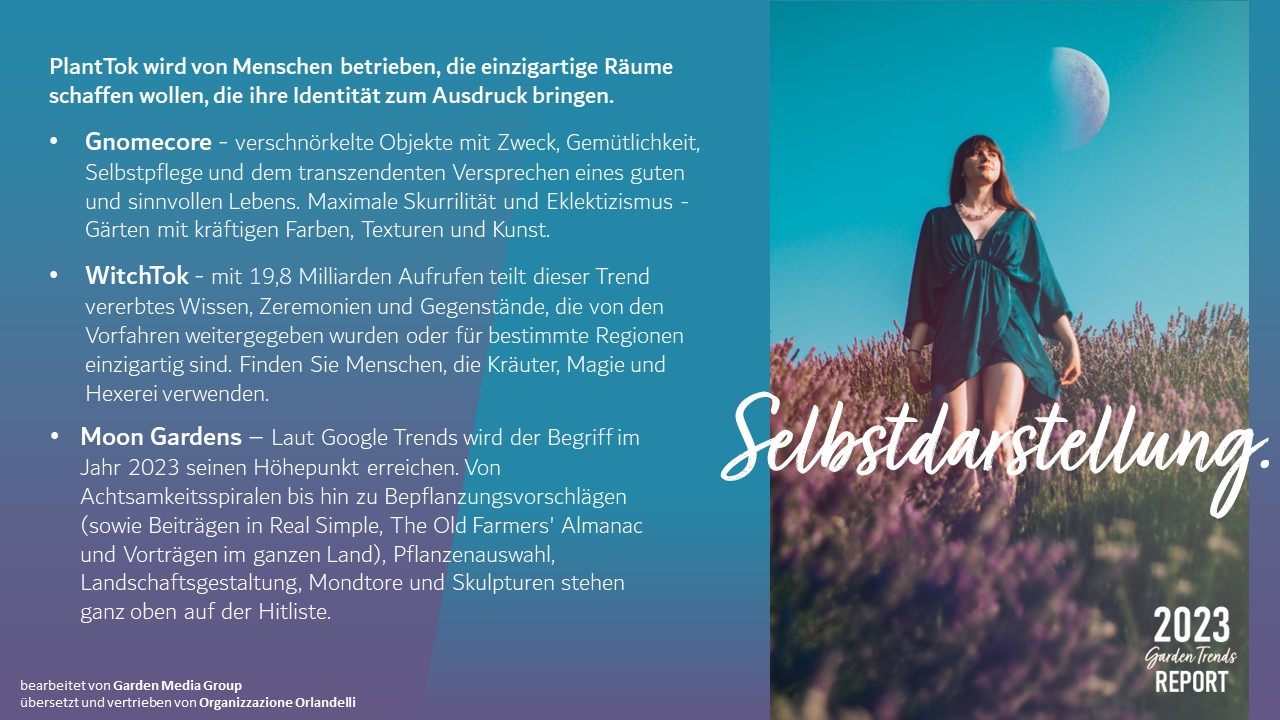 Die Organizzazione Orlandelli freut sich, die Trends der Gartenbranche 2023 in deutscher Sprache von der Garden Media Group zu übersetzen und zu verbreiten.