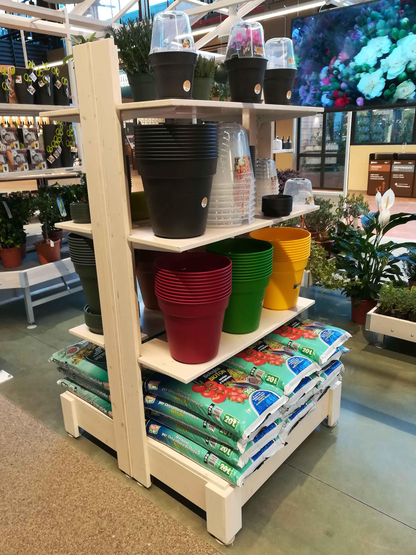 Ausgehend von der Analyse der FICO Eataly World Kontexts hat sich ein einzigartiges Projekt definiert: Le Serre Garden Center Identity bieten eine Verkaufsumgebung, wo die Besucher sich in einer positiven Atmosphäre eintauchen können, in der die Linien und Farben der Displays von der AMOR-Holzlinie die natürliche Schönheit von Pflanzen und Blumen hervorheben, erhöhend deren wahrgenommenen Wert.