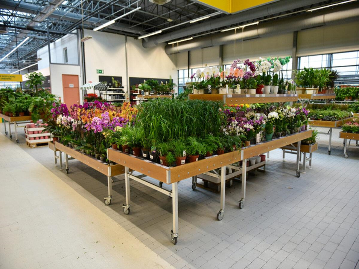 Immer mehr Baumärkte widmen Ausstellungsflächen dem Grün. Merkur, führend im Verkauf von Haushaltsprodukten und Hobbygeräten, hat sich für die Organizzazione Orlandelli entschieden, für die Umgestaltung des Ausstellungsraums, der ausschließlich den Pflanzen im Geschäft in Ljubljana (Slowenien) gewidmet ist. Layout erstellt mit der Naturholzmöbellinie, mit Produkten erstellt und angepasst, um sie an das Merkur-Projekt anpassbar zu machen.