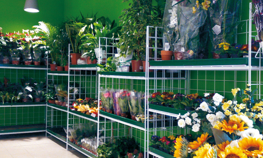 Die Gitterstruktur des Verkaufsregals erlaubt eine ständige und gleichmäßige Exposition der Pflanzen ans Licht, damit ihre Haltbarkeit und langfristige Frischhaltung möglich ist..