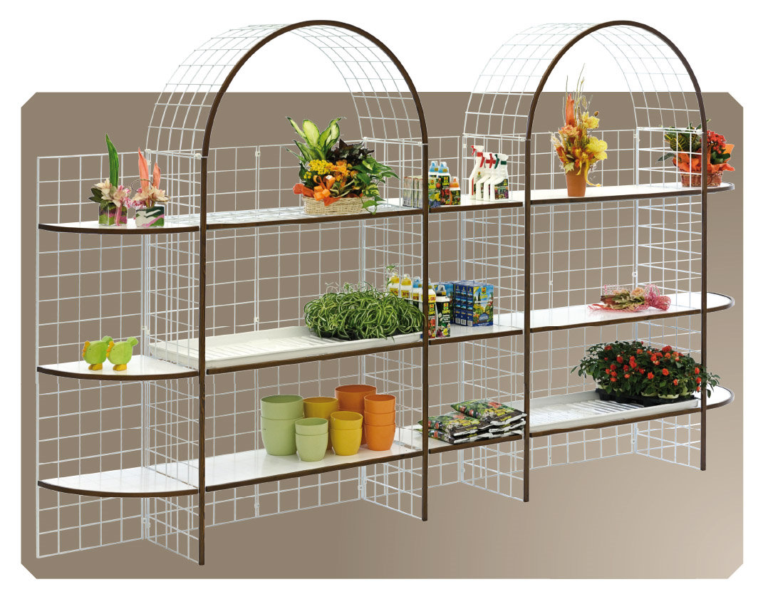 Modulares Verkaufsregal aus Gitterelementen mit 3 Böden