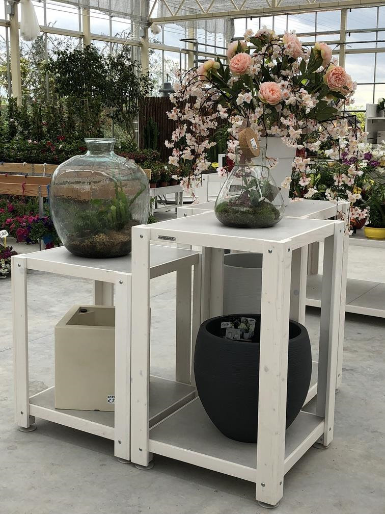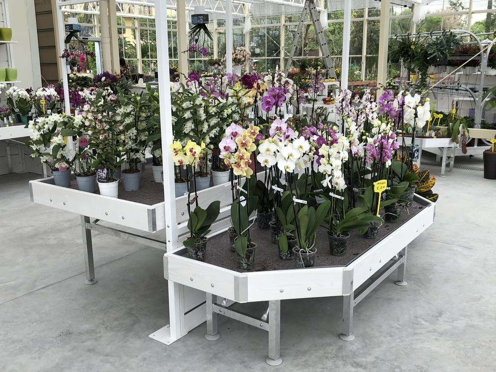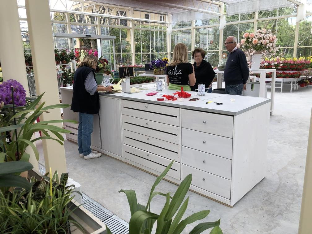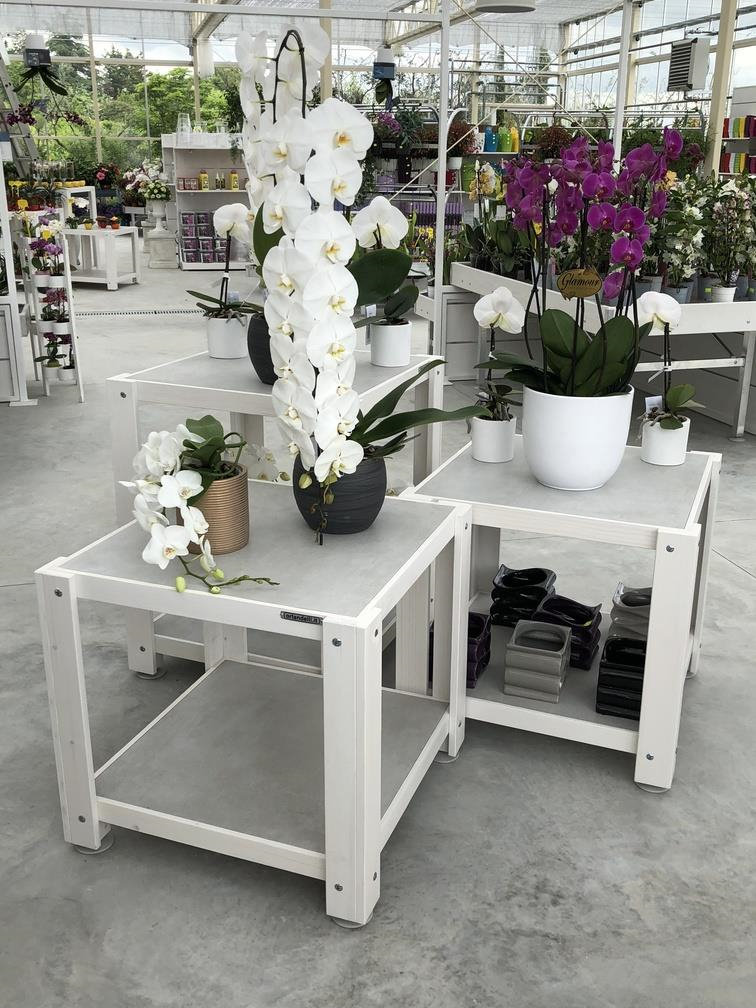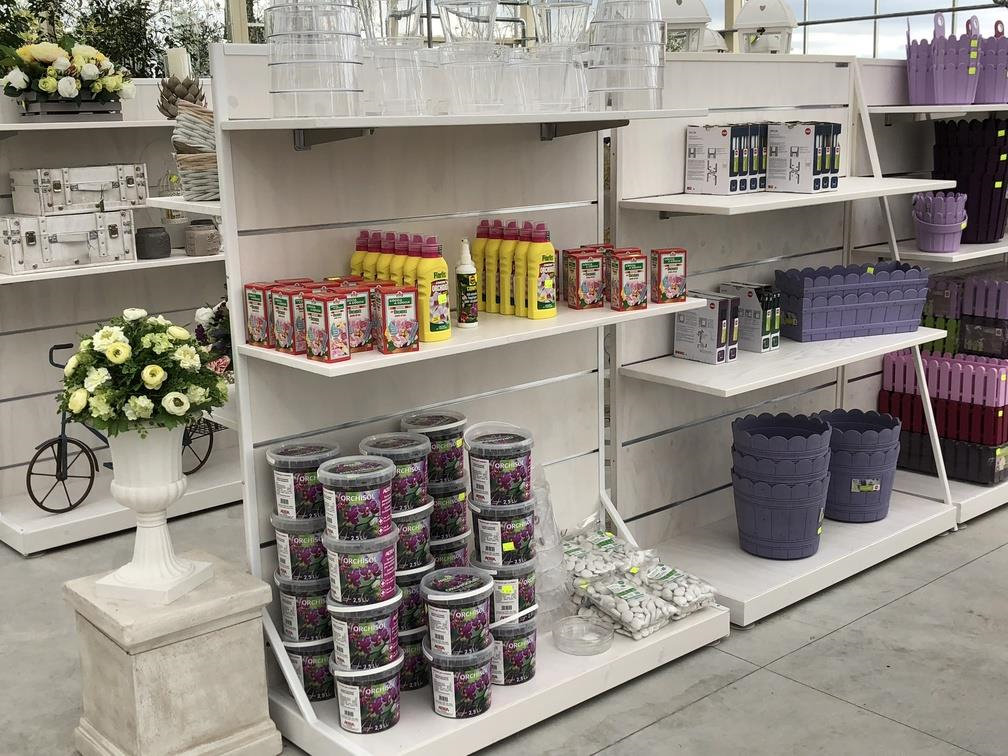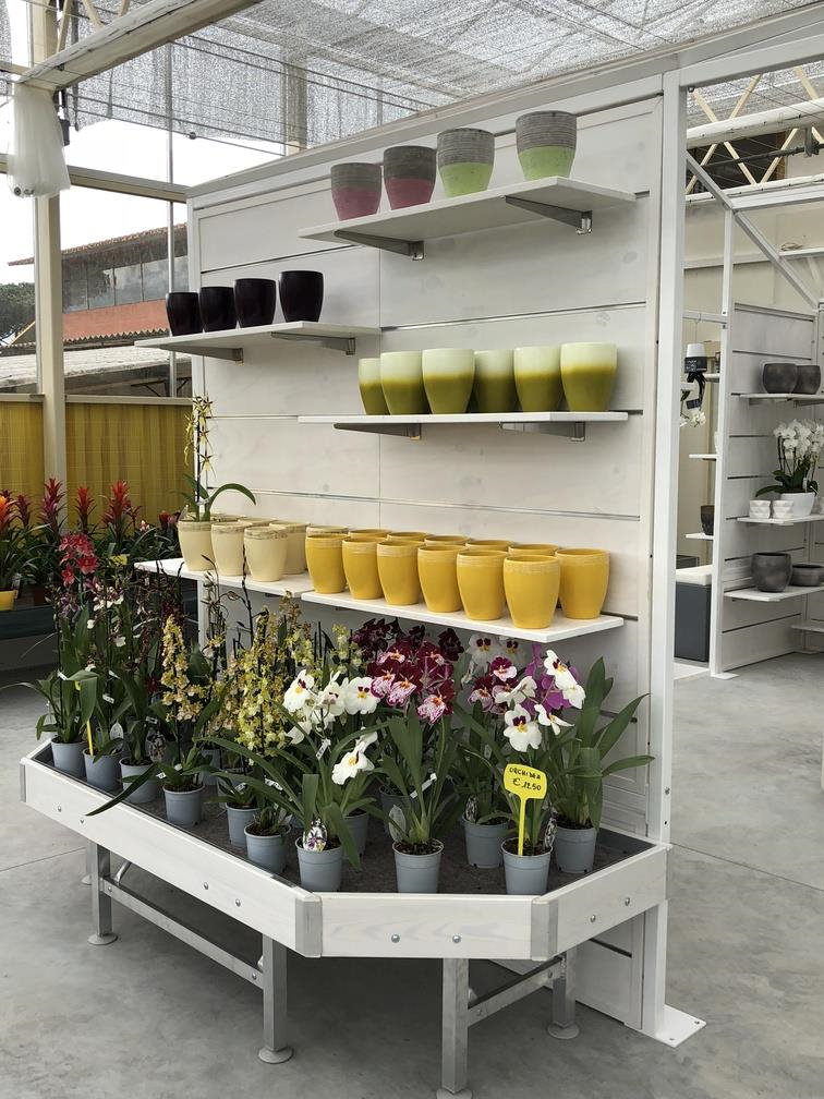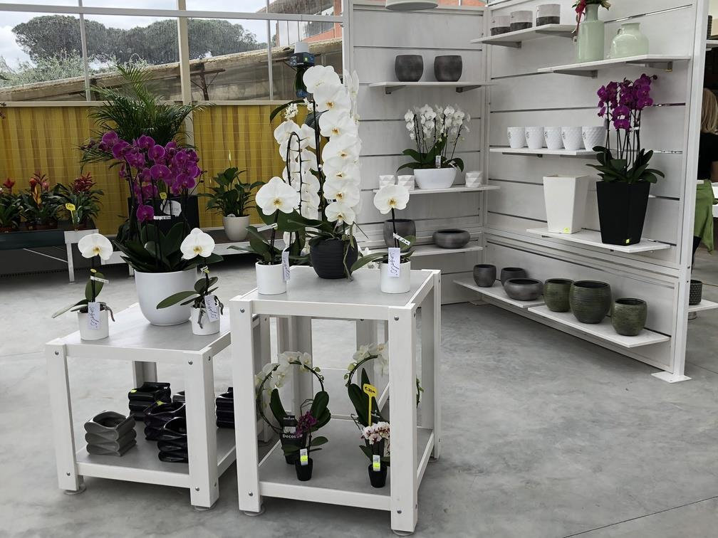 Inside the garden center a sort of iron "greenhouse in the greenhouse" was created, completely repainted and finished with furniture and wooden details, in which the exhibition of orchids is highlighted, a strength of Erika Vivai. A Garden Center branded Identity Orlandelli stage that can be set in a different way to highlight other specialties over the seasons.