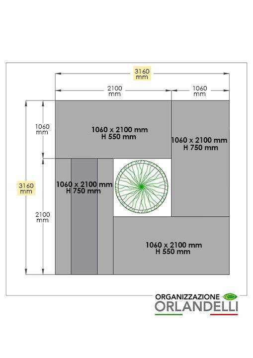 sich problemlos auf jede Verkaufsstelle übertragen lässt. Die besondere Kombination von vier 1 x 2 mt Paletten erzeugt einen leeren Raum, in dem Sie eine große Pflanze platzieren können.