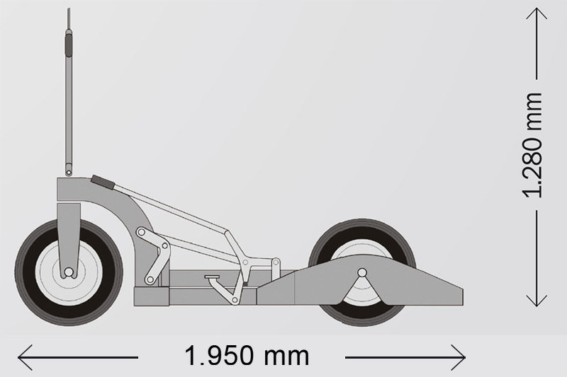 Dank der Kombination aus Luftreifen, Kipphebel und lenkbarer Deichsel ist dieses Werkzeug die dynamischste und effektivste Lösung für den Transport von Dänenkarren unter schwierigen Bedingungen.