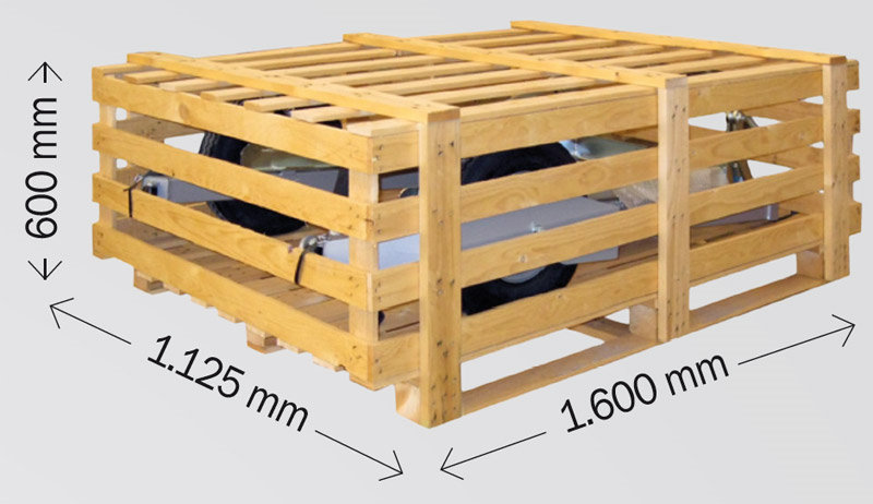 Abmessungen: L 1.900 mm x B 1.030 mm x H 1.280 mm