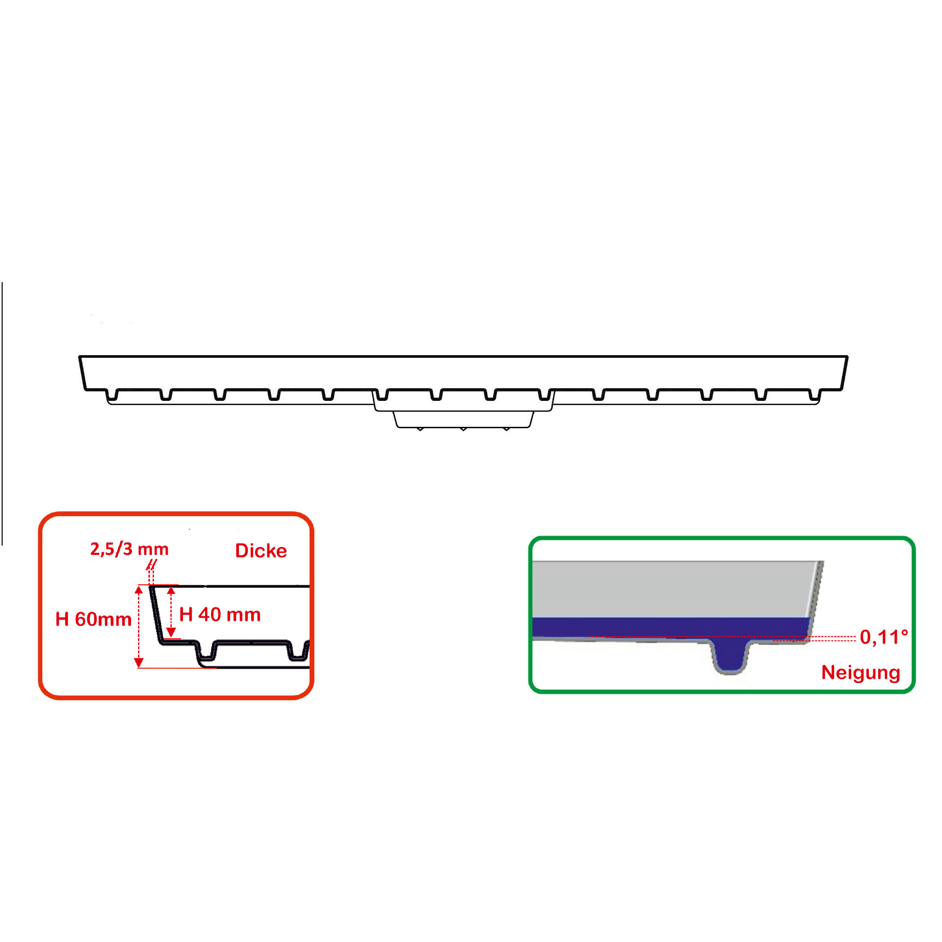 Die ausreichende Neigung vermeidet einen Wasserstau.
