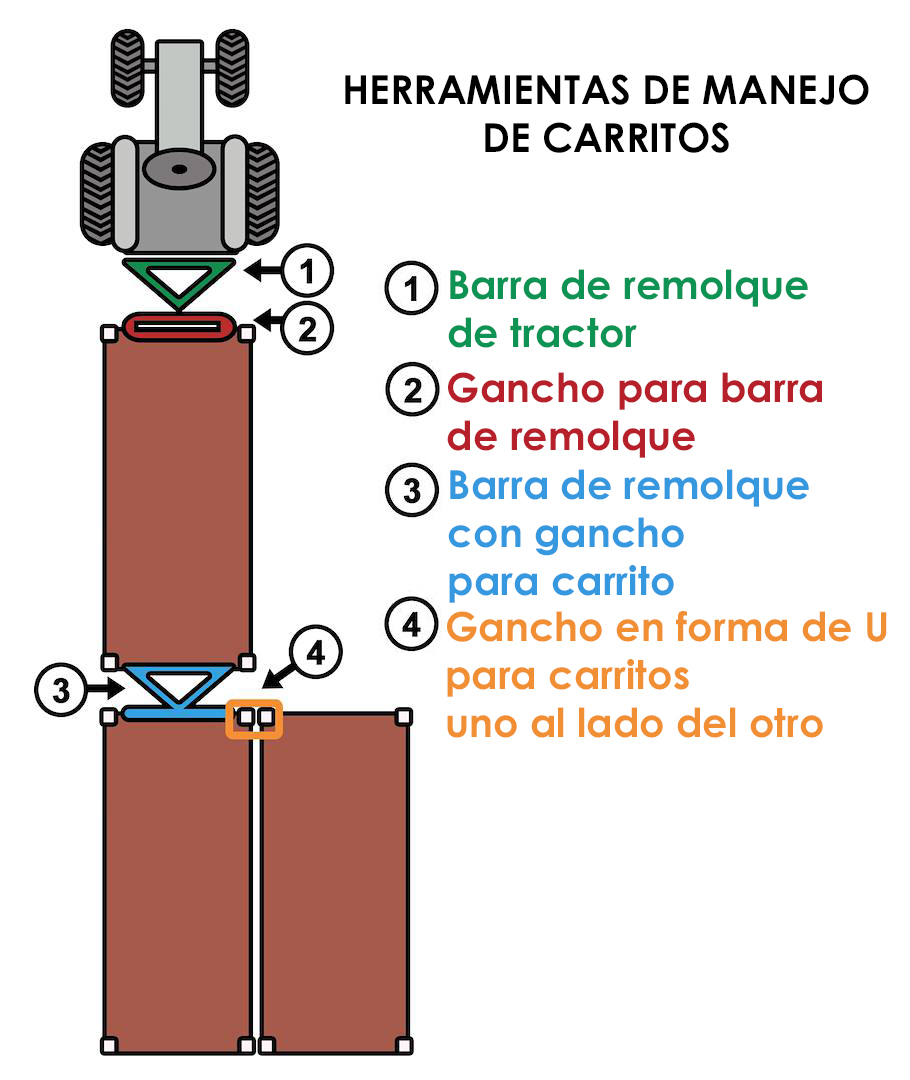 • Timón y ganchos de remolque para carritos utilizados en floricultura