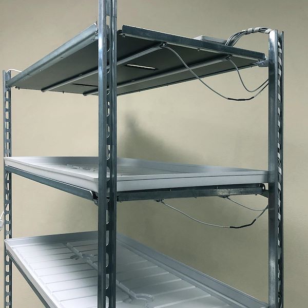 Pour répondre à cette demande croissante du marché, le chariot DC avec kit d'éclairage a été développé par Organizzazione Orlandelli, leader dans la fourniture de matériel pour la floriculture. Le kit d'éclairage LED a été conçu sur mesure pour les chariots DC réalisant ainsi un produit optimal pour la culture d'une ample variété de plantes.
