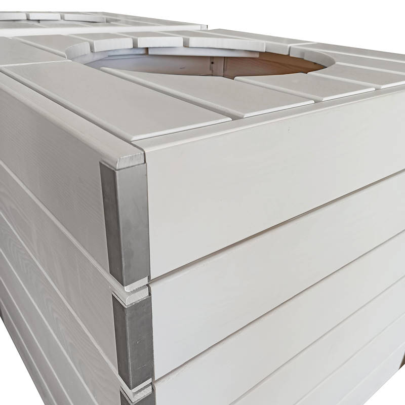 I listelli in legno bianco che compongono la struttura trasmettono sensazioni di natura, pulizia e luminosità all'ambiente in cui viene inserita la fioriera.