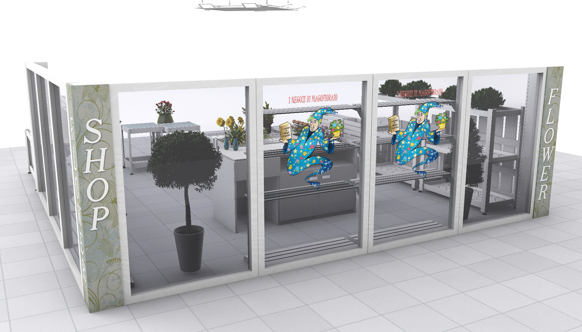 Il progetto è stato sviluppato sull’idea di creare una piccola bomboniera all’interno di un’area puramente commerciale come quella di un supermercato. Un’area semi-chiusa, che si affaccia sulla galleria del centro commerciale e aperta verso l’interno del supermercato.