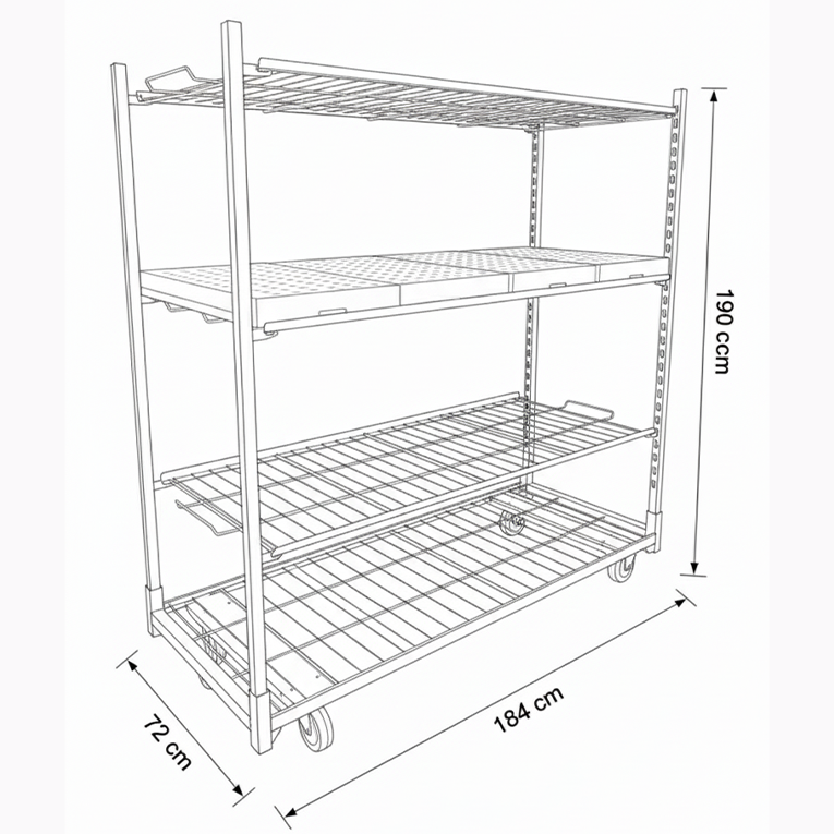 HortiPro va oltre il semplice trasporto. I suoi ripiani a griglia sono stati pensati per ottimizzare ogni centimetro di spazio, accogliendo perfettamente i plateau standard da 70x44 cm e garantendo una stabilità eccezionale durante la movimentazione. È lo strumento ideale per la germinazione, permettendo una gestione efficiente di un gran numero di piantine.