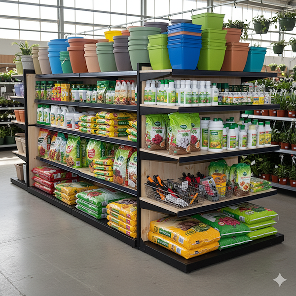Combinata con i banchi espositori per piante e fiori, la gondola contribuisce a costruire un layout esperienziale in grado di coinvolgere il cliente attraverso l’estetica, il tatto e l’emozione. Un modo efficace per trasformare ogni visita in punto vendita in un momento memorabile.